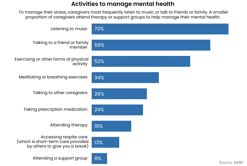 Caregivers need both emotional and practical support from family, friends, and professionals.