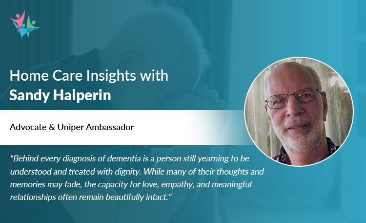 Sandy Halperin is a devoted advocate and Uniper Ambassador, living with dementia and other complex health challenges. Since joining Uniper in 2021, he’s discovered a daily lifeline through engaging live classes, community discussions, and relationship support via TV from home.