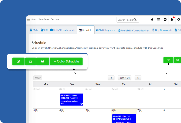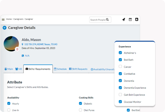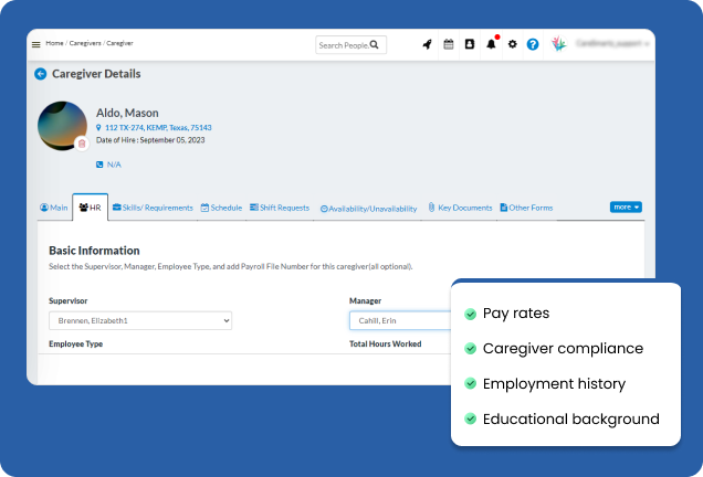 The HR tab is a great tool to record and access everything you need to know about your caregivers. Record and update caregiver information such as: