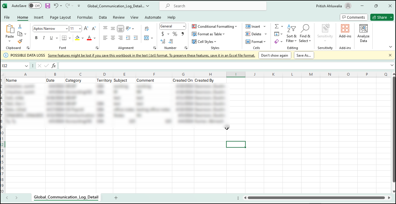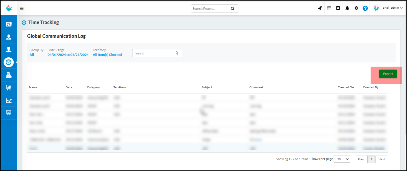 User(s) will be able to export the Global Communication Log based on their filters applied by the user. They will be able to download an excel file with the required data.