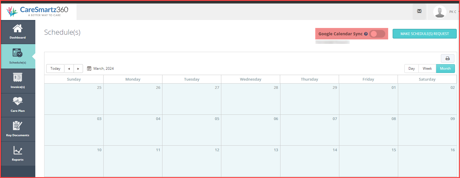 Note: Please note that you can only turn the sync on for your CareSmartz360 account to maintain the user’s privacy.