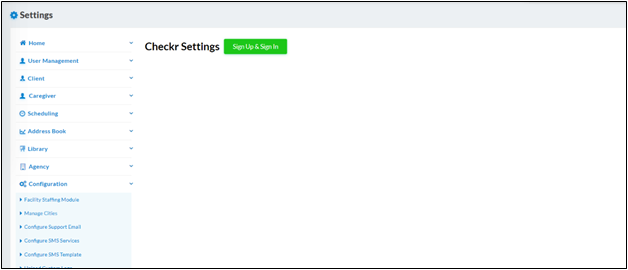 CareSmartz360 has partnered with Checkr to conduct background checks seamlessly. A new link titled “Background Verification” has been added to the Admin Settings under the configuration section.