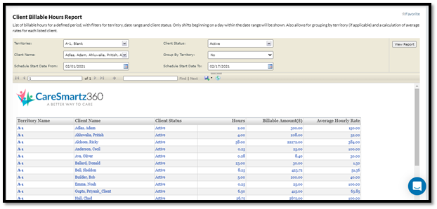 New filters are update in  Client Billable Hours Report- caresmartz360 -updates