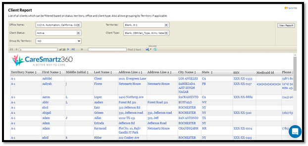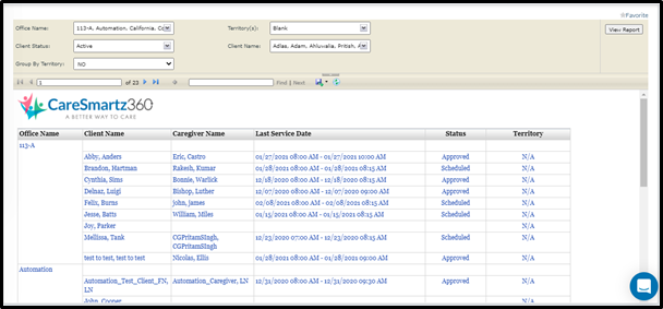 New filters are update in clients report- caresmartz360 -updates