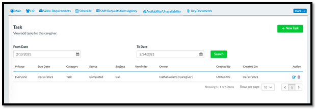 Below mentioned two columns have been added in the Task and Communication section for the Client as well as the Caregiver: