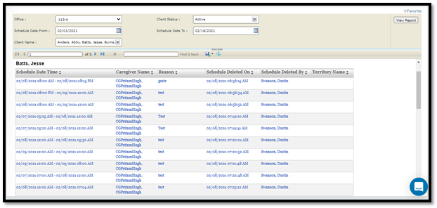 Schedule Data in the report will be chronologically sorted by deleted date within the grouping.