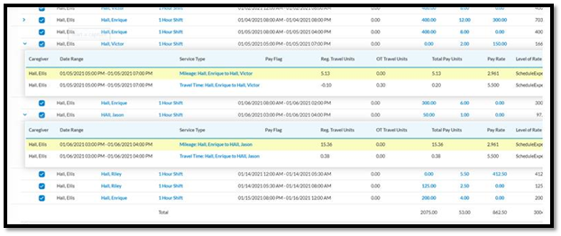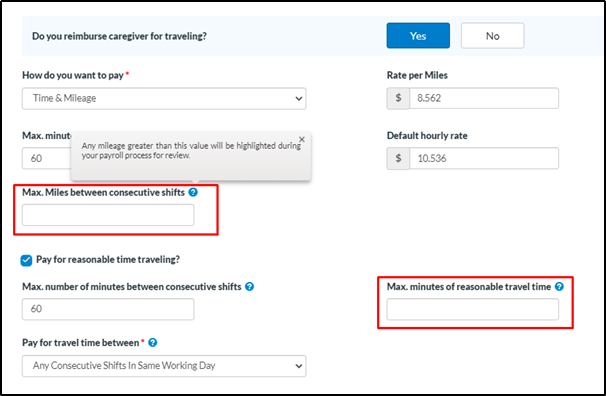 Highlight unusual activity in Mileage and Travel time calculation-  caresmartz360-Payroll Updates