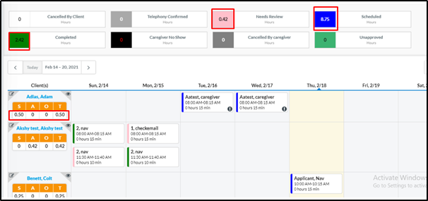 3. Client Billable Hours data under the Time Tracking View is different from the ones displayed under schedule calendar.