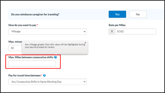 Able to define the Maximum Miles between consecutive shifts - caresmartz360-Updates.