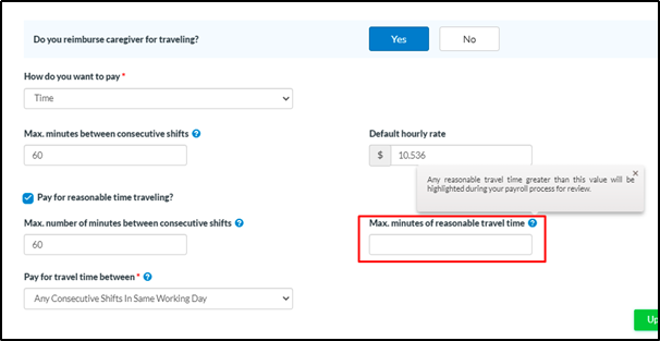 Able to define the Maximum minutes of reasonable travel time - caresmartz360-Updates