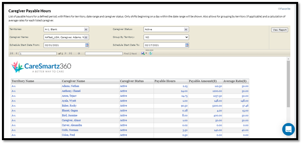 New filters are added in Caregiver Payable Hours - caresmartz360 -updates