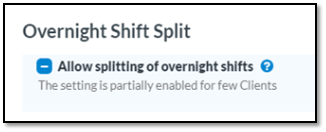 1. When “Overnight Shift Split” is turned ON, it is applicable for all existing clients i.e. for active as well as inactive clients.