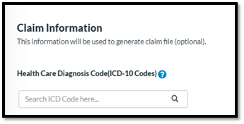 1. Search box length reduced for claim codes.