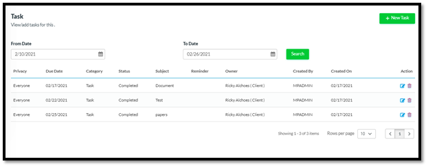 3. This would help the user to know the date of task/communication creation as well as it would help the user to know by whom the task/communication was created.