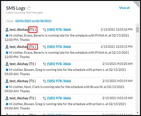 11. Territory Information will be displayed on the SMS Logs Widget on the Dashboard.