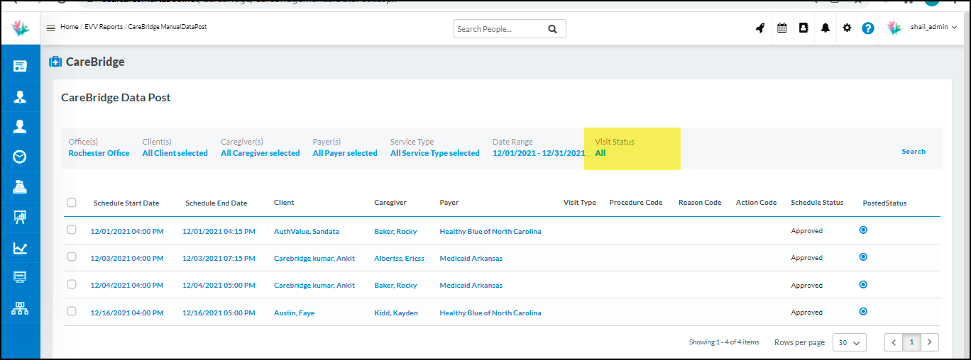 Carebridge Update 1. Data Post Screen – Visit Status Filter is Included
