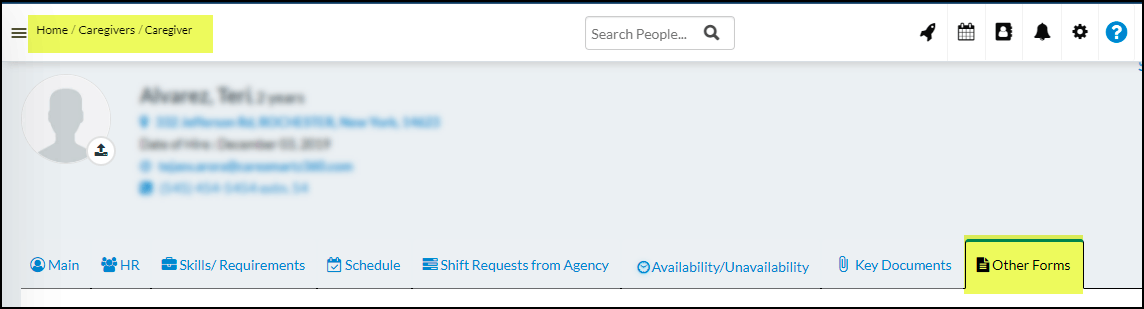 Similar to ‘Other Forms’ in the Client profile, you can now create caregiver template forms in Admin Settings and then access them from the “Caregiver Profile – Other Forms” and “Caregiver Applicant Profile – Other Forms”.