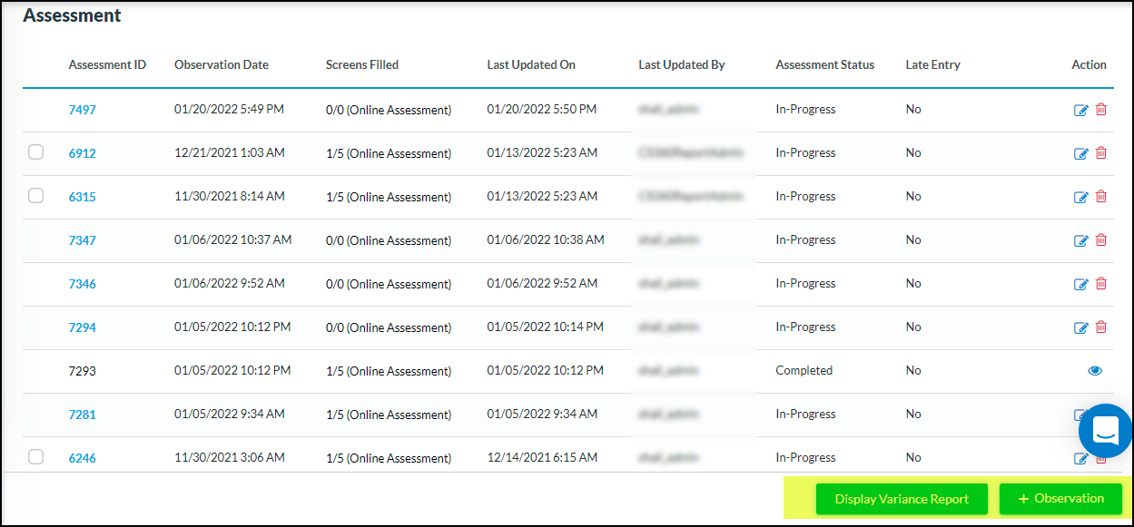 c. ‘Last Updated on’ and ‘Last Updated by’ merged into one – ‘Modified’. d. Renamed ‘Assessment Status’ to ‘Status’. e. ‘Add Observation’ and ‘Display Variance Report’ buttons are now always displayed on the screen for easy access. 3. ‘Add Observation’ and ‘Display Variance Report’ buttons are now always displayed on the screen for easy access.