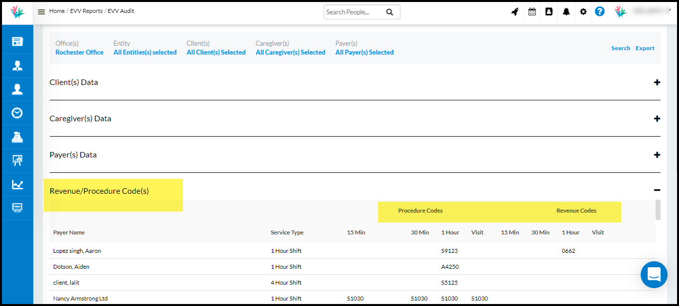 Report will now show the service type with procedure codes & revenue codes for selected payers.