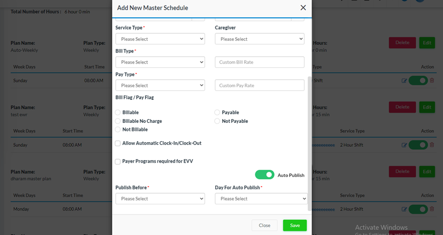 Agency user(s) can now set Auto-Publish for all/selective Master Schedule Plans.