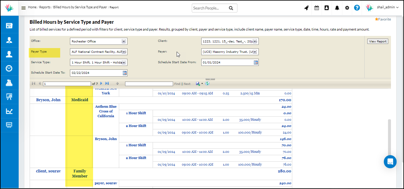 In the accounting report “Billed Hours by Service Type and Payer”, now you can filter and view the data with additional filters of “Payer Type” with the addition of columns for the “Office” and “Payer Type”. The “Total Amount” row is added for each office record. The value for the “Payer” filter will now be affected based on the values selected in the “Payer Type”.