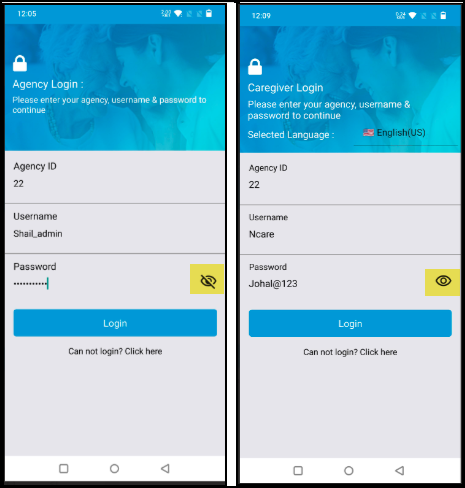 On the Login screen, User will have the ability to view their password just before login in case they wish to. We have provided an eye icon for the user to view the password.