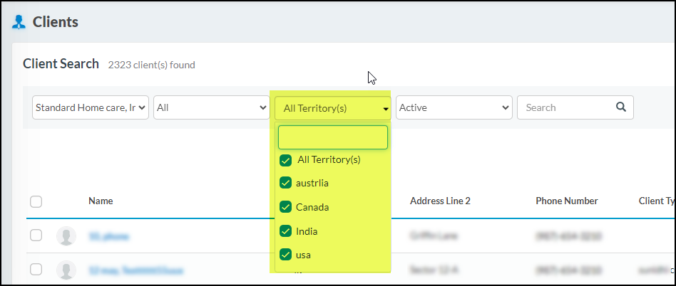 Agency users will now have the capability to choose multiple territories on the client listing page. This feature proves useful when agency users need to execute bulk actions or review data, among other tasks.