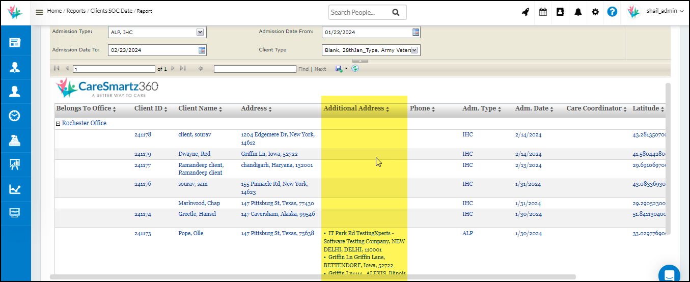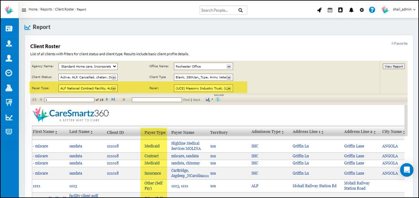 In the client report “Client Roster”, now you can filter and view the data with the additional filters “Payer Type” and “Payer”. The value for the “Payer” filter will populate based on the value(s) selected in the filter “Payer Type”. You can also identify which “Payer Type” and “Payer” are associated with each row record with the introduction of the Payer Type and Payer column.