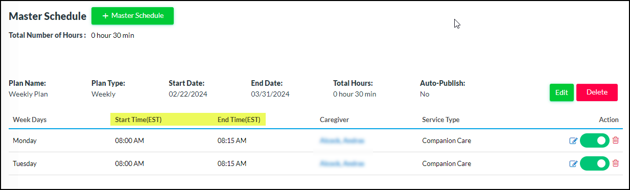 Agency users will now have the capability to generate Client Master Schedules aligned with the Client’s time zone. During the creation or modification of a Master Schedule, labels denoting the Client’s time zone have been incorporated for Start and End Times to aid users. Additionally, on the Master Schedule listing page, the Client’s time zone has been included in the labels for Start and End times to facilitate easy identification.