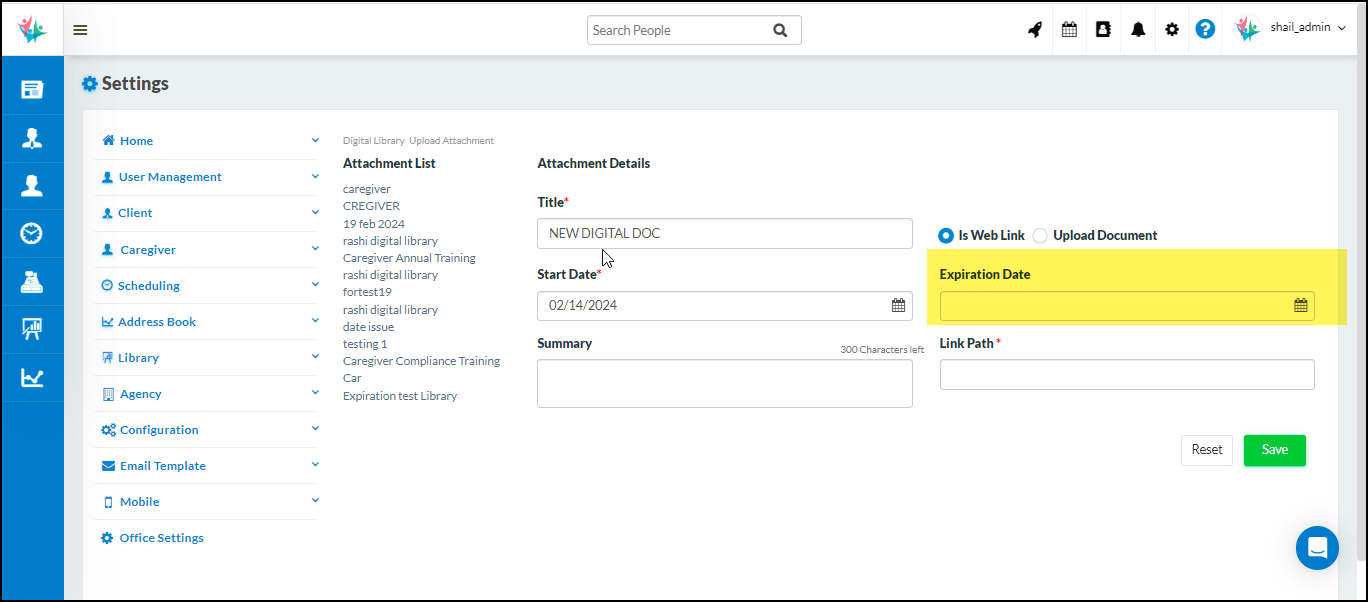Now while adding/editing any file/link/folder in the digital library the field for “Expiration Date” will not be automatically filled based on the “Start Date” added. If you wish to add the “Expiration Date” you need to click on the input box where a calendar will open up similar to that in the case of adding the “Start Date” and you can add the “Expiration Date”.