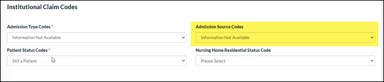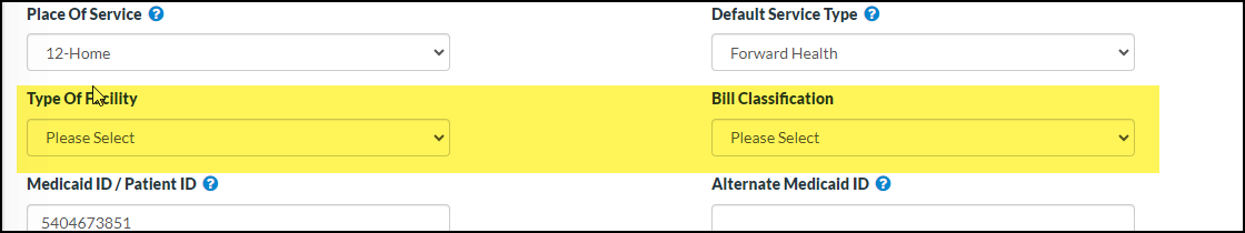 In the state of Wisconsin, for Forward Health clearing house, the user will now be able to enter the following details that need to be populated in the 837I files.