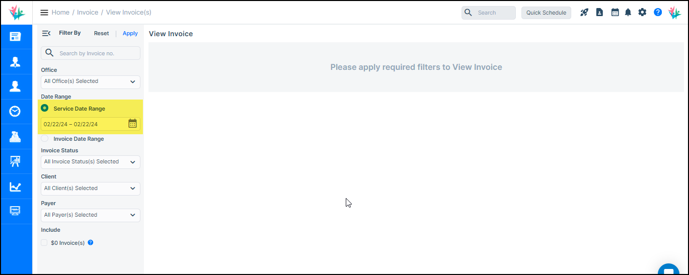 On the View finalized invoice filters, users can now search via service date range or Invoice date range based on their requirements to find the invoices.