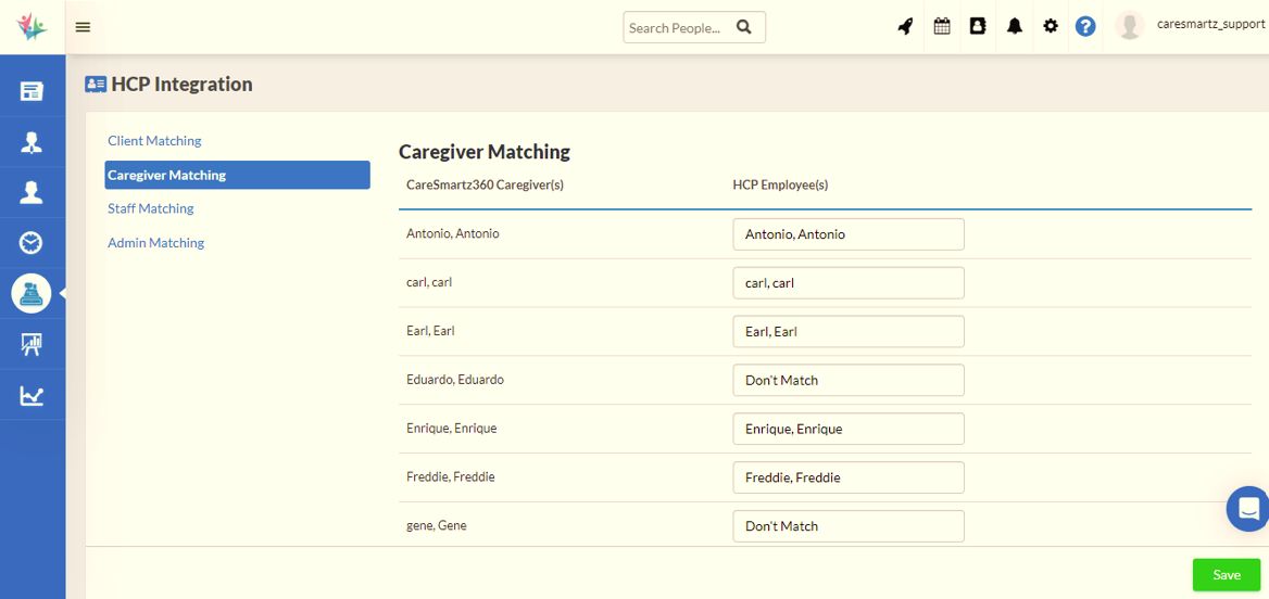 CareSmartz360 has now integrated with Home Care Pulse, giving us the ability to create and update clients, admins, caregivers, and staff users from CareSmartz360 into HCP. This data would be further used by HCP to conduct surveys and training.