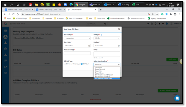 Now, there will be more options available in addition to the previous 4 rounding labeled with “Bill Duration” (for billing) or “Pay Duration” (for payroll).