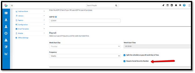 Under Office Settings -> Payroll tab, We have introduced a new setting named “Require Social Security Number”. If this checkbox is enabled, the social security number will be required under the caregiver profile while adding or making an edit to the profile. This has been done to support Payroll configurations which require a SSN.