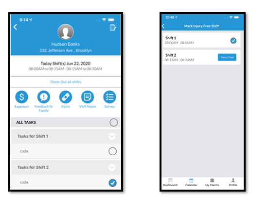 5. Once the auto clock-in/clock-out feature starts, the caregiver will have to update the task details & other operations within the threshold for each shift or alternatively at the end of the last shift.