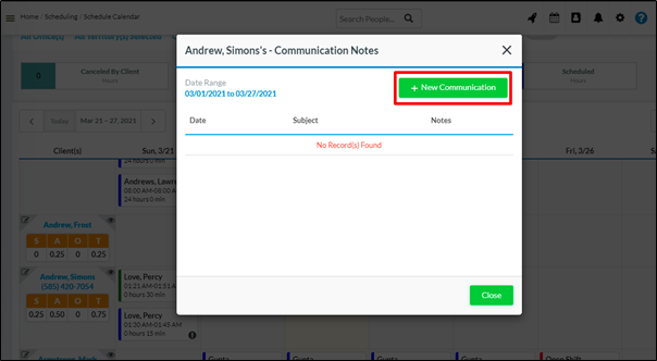 Agencies will be able to “Add communication” notes from View Communication Notes in the Schedule Calendar and Open Shift Calendar itself so that it is easy for the schedulers to add communication right from the Schedule Calendar and Open Shift Calendar instead of leaving the respective calendar screen and then navigating to the respective profile to create it.