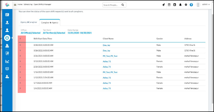 User(s) will have the ability to expand in one go to view more details under “Caregiver –> Agency” tab similar to “Agency –> Caregiver” tab.