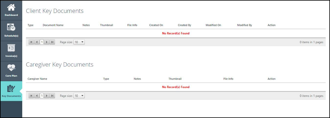 2. The second section will be known as “Caregiver Key Documents”. This section will contain all caregiver documents shared by Agency with the client.