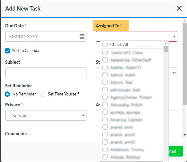 Agency user(s) will now be able to assign multiple people to a task. All the assignee(s) will be able to view the assigned task in their dashboard. Once the task is marked as completed it would be removed from the dashboard of the assignee who completed the task as well as from the dashboard of all the co-assignees.