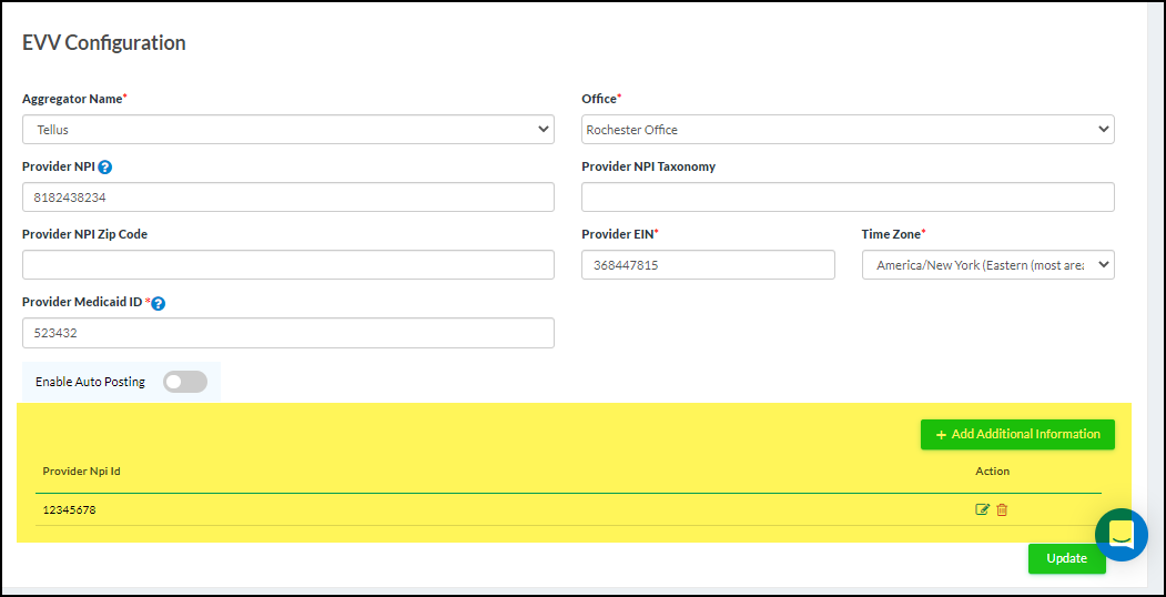 Ability to add multiple NPI numbers on the EVV configuration page for those who need to add an NPI at the time of posting to TELLUS.