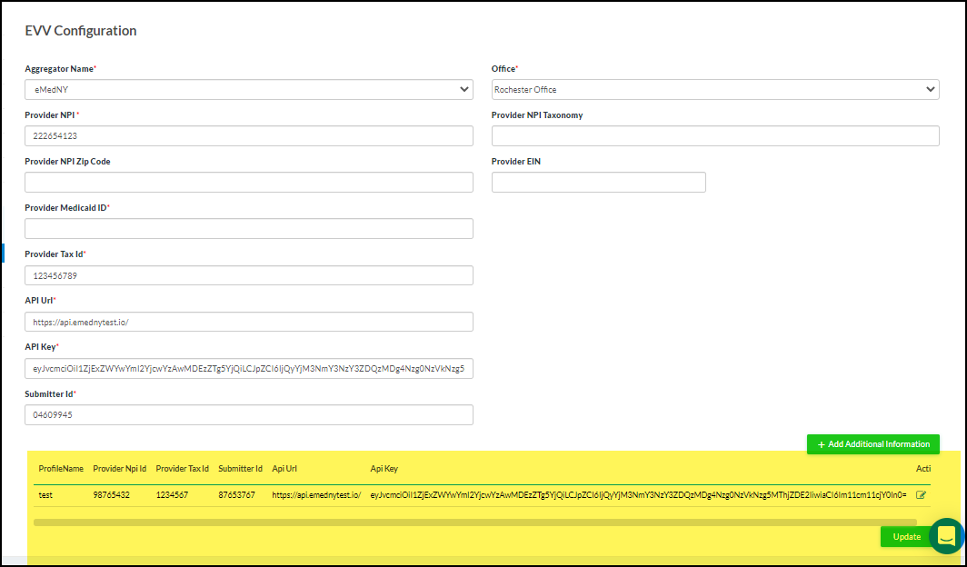 You will now be able to configure multiple API Keys and their respective URL on the EVV configuration screen.