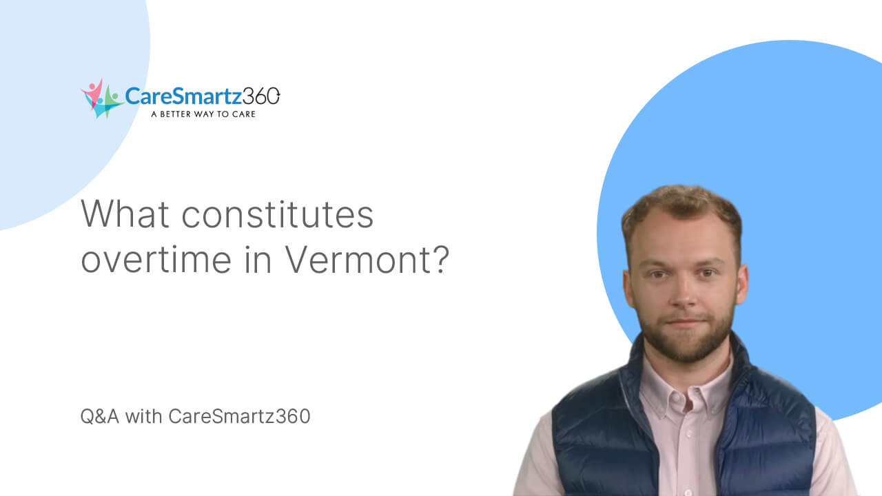 This video covers overtime pay rules for home care workers in Vermont: workers exceeding 40 hours in a 7-day workweek are entitled to overtime pay of at least 1.5 times their regular rate. It highlights how software with accurate visit-time capture (via EVV) supports compliance with payroll and overtime rules.