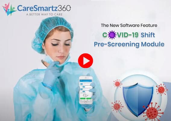 CareSmartz360’s COVID-19 “Pre-Screening” feature helps in quick screening of the caregivers before they begin their shift. This not only ensures the safety of the clients, but also helps agencies in monitoring the overall health of their workers in real-time.